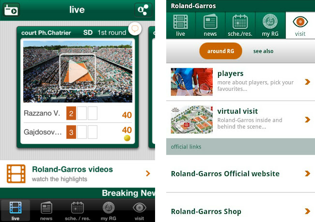 Pocos días antes de comenzar Roland-Garros, la empresa organizadora del evento lanzo una aplicación oficial para seguir paso a paso los acontecimientos de todo el torneo.