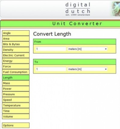 Digital Dutch Unit Converter es una sorprendente aplicación online que permite a sus usuarios, convertir todas las unidades de medida que existen y algunos pares de divisas con solo hacer un par de clics.