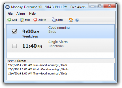 Free alarm clock es una excelente aplicación freeware que permite programar una gran cantidad de alarmas en nuestro ordenador, para recordar todas las citas y compromisos que tengamos en determinada fecha.