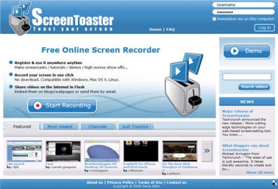 La interfaz de este software online es bastante sencilla de manipular, puesto que solo se necesita utilizar un par de botones para señalar si se desea realizar una captura o proceder a hacer algún tipo de video en el que se deseen adjuntar una serie de imágenes que hayan sido captadas con Screen Toaster.