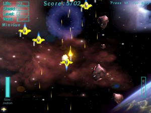 El control de la nave se realizará con el ratón , se dispara con botón izquierdo y con el derecho se activa la cámara lenta si tenemos carga. Aquí os dejamos el link para descargar el juego: Back to Earth